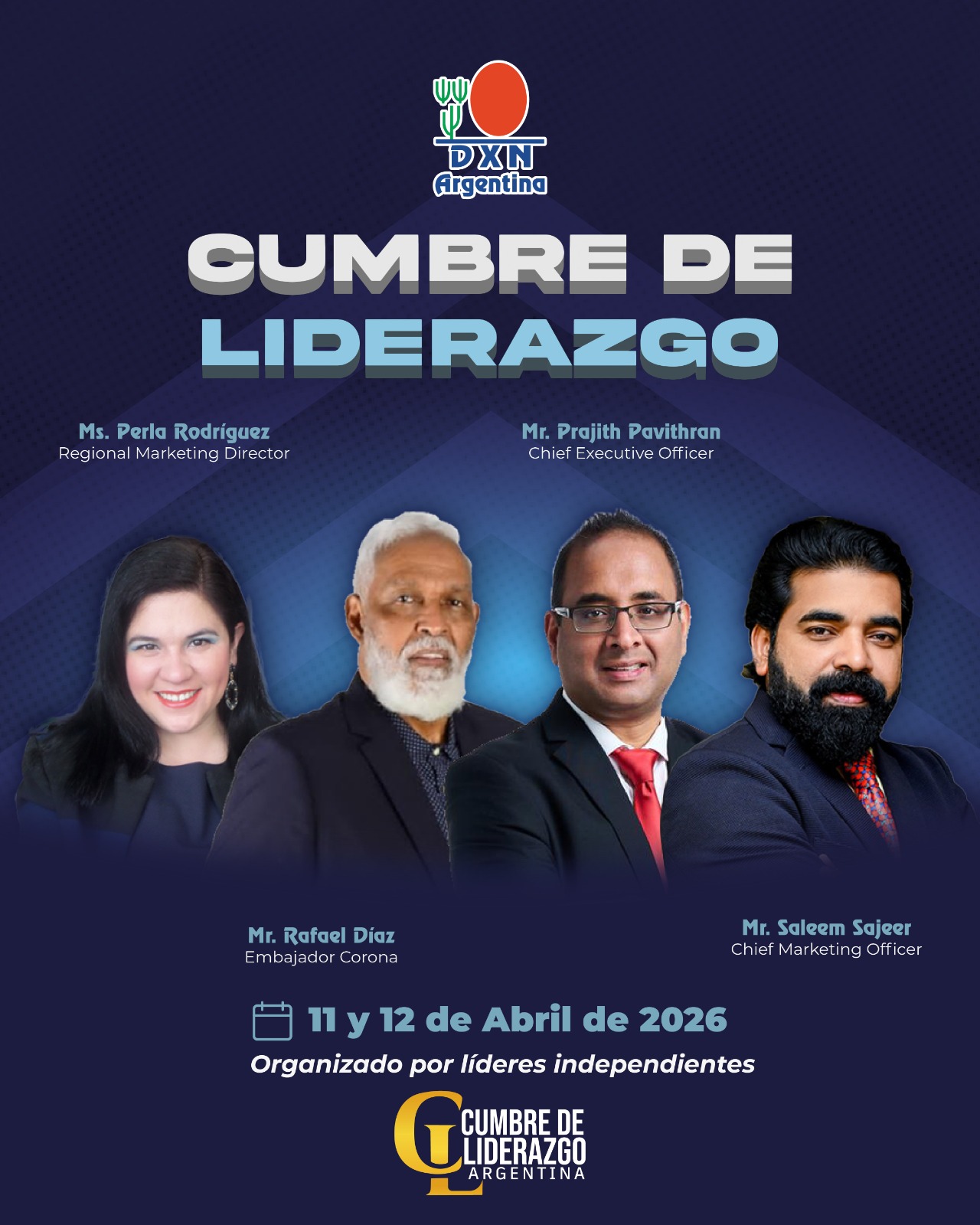 🎉🔥 ¡BUENOS DÍAS DXN! 🔥💯🇦🇷🌍 #SevieneConTodo 💯🇦🇷🌍💎🙏🎯 ¡La Gran Cumbre de Liderazgo DXN 2026 Se viene con TODO! 🙌 Imperdible  🗓 11 y 12 De Abril  de 2026 📍¡Prepárate para vivir una experiencia INOLVIDABLE! 🌟 INVITADOS ESPECIALES DE LUJO 🌟 🌟Mr @Prajith Pavithran           Chief Executive Officer CEO DXN🌏 ✨ Mr @Saleem Shajeer              Chief Marketing Officer DXN🇦🇷🌍 ✨ Ms @Perla Rodríguez                Regional Marketing D